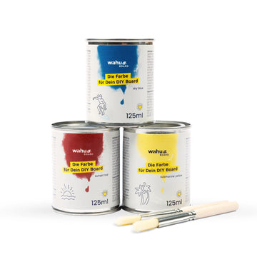 With our DIY colors your board is guaranteed to be a hit. For one thing, they are certified organic and therefore ideal for children. On the other hand, they have an integrated sealant that makes your board artwork long-lasting. You can find all further details about the DIY colors in their technical data sheet.